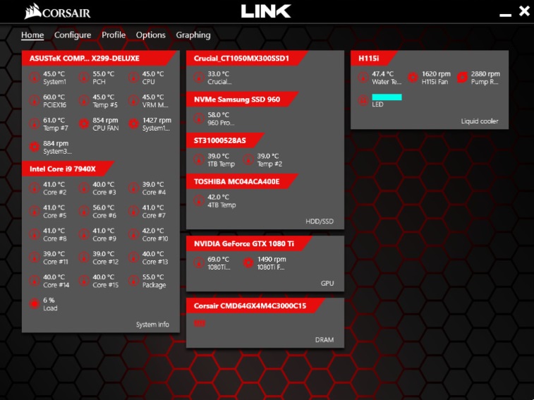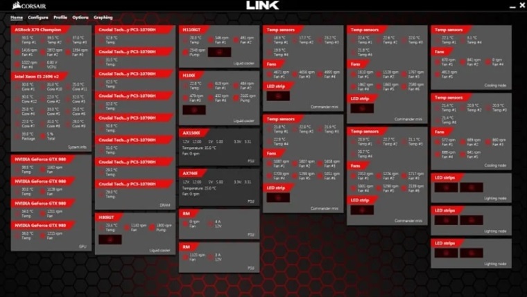 Corsair Link - это программа, которая собирает данные с датчиков температуры, отображает скорости вращения вентиляторов, управляет подсветкой LED-компонентов системы и работает с различными сенсорами на материнской плате.