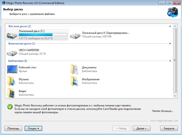 Magic Photo Recovery имеет пошаговый мастер и полностью переведен на русский язык.