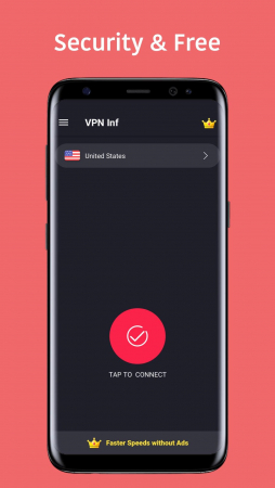 VPN Inf - приложение vpn для Android в котором вы найдете все нужные функции для безопасного интернет соединения. Это приложение не просит вас зарегистрироваться или делать какие либо другие действия, просто скачивайте и пользуйтесь.