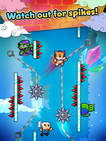 Заберитесь как можно выше, избегайте препятствий и побивайте рекорды в игре Wall Kickers, набрав максимальное количество очков! Установите игру на свое устройство Android с нашего сайта и попробуйте сами.