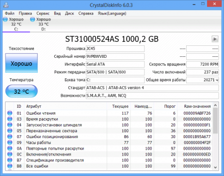 CrystalDiskInfo - это инструмент для мониторинга состояния жестких дисков, которые поддерживают технологию S.M.A.R.T.