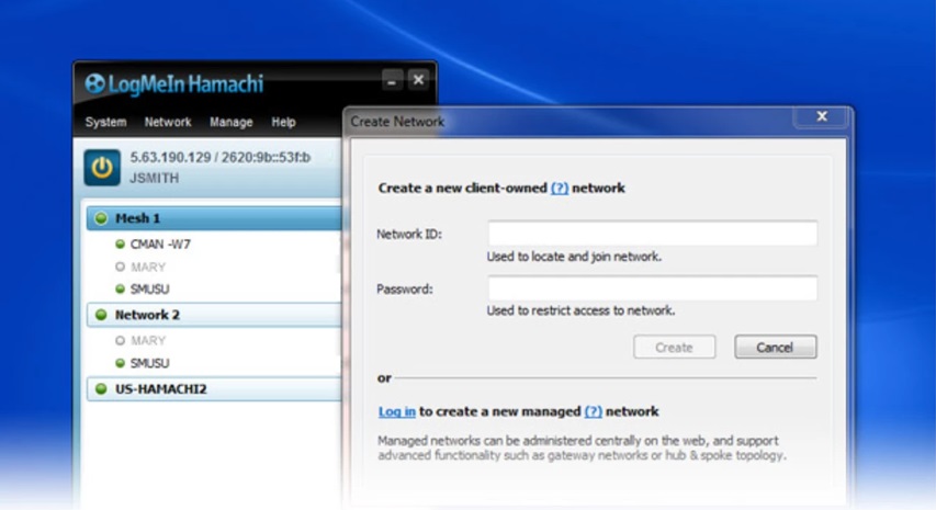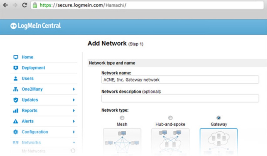 - Организация виртуальных сетей со шлюзом. Удаленные пользователи получают безопасный доступ к ЛВС или к вашей сети, а также к ресурсам посредством шлюза LogMeIn Hamachi. Никаких изменений настроек маршрутизаторов или сетевых экранов!