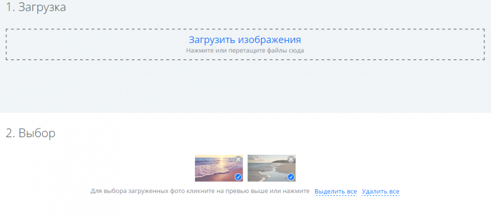 Этот сервис еще проще в управлении. Главная страница встречает нас загрузкой по типу Drag-and-drop. Изображение можно перетащить с компьютера или нажать на поле загрузки и выбрать фото через проводник. За раз разгружать можно сразу несколько фото.