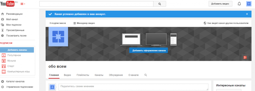 Как создать канал на ютубе