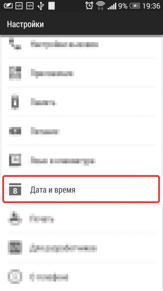 Нажав на эту кнопку, вы попадете в меню настроек. Здесь нужно найти пункт "Дата и время". И опять же нажимайте на него.