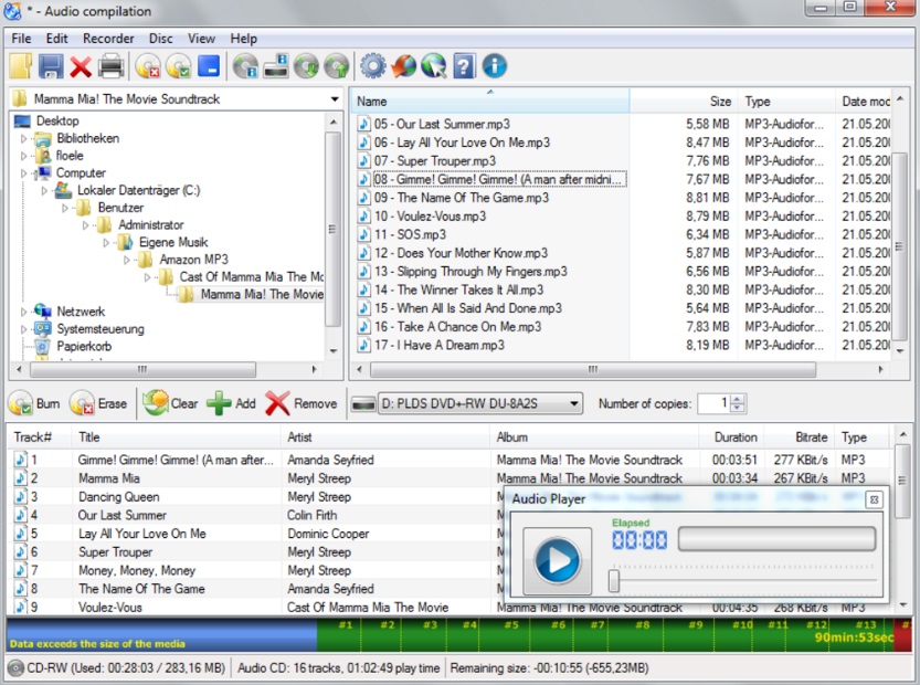 Программа может создавать не только CD, но и mp3-диски, для помещения большего количества музыки на диск.