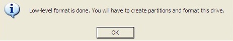 Если вы все-таки решились на эту операцию, то смело жмите на кнопку, указанную курсивом. Потом еще раз подтверждаете свое намерение. Процесс может занять довольно длительное время, все зависит от объема памяти накопителя. В конечном счете вас оповестят о завершении вот таким сообщением: