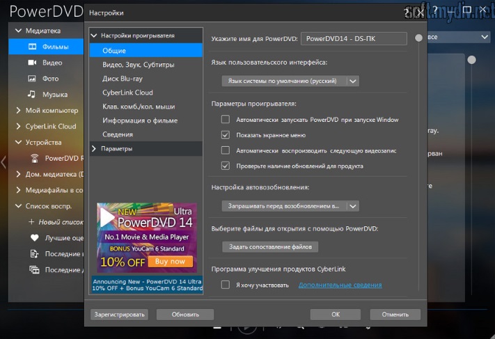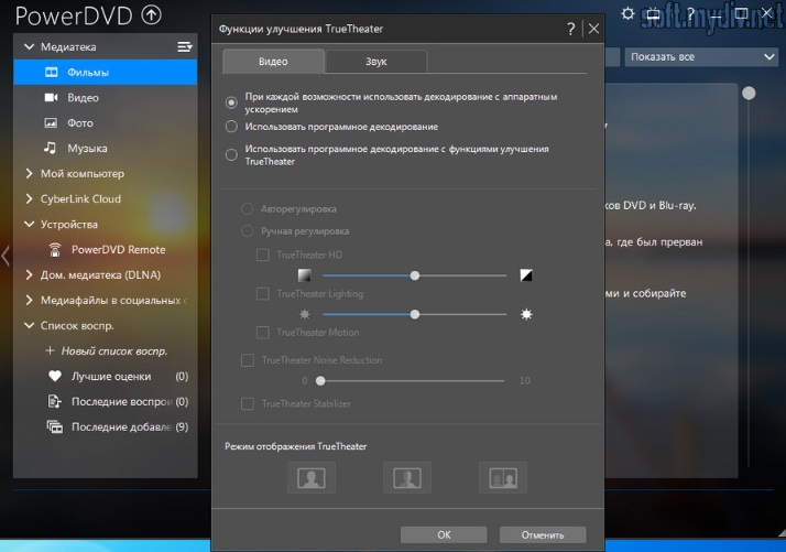 Кроме этого в данном проигрывателе есть немало и других функций. Можно выделить еще одну функцию. Так, при помощи проигрывателя PowerDVD можно выкладывать определенное видео на сервис YouTube . Есть здесь и поддержка видеозакладок. Также благодаря различным настройкам, здесь можно настроить буквально идеальный звук.