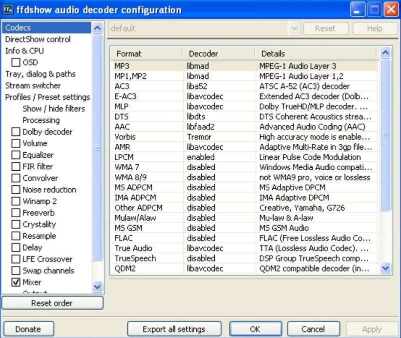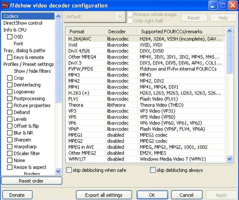 Функций и возможностей у декодера ffdshow очень много. Можно еще отметить, что на сегодняшний день этот декодер поддерживает более 50 различных видеоформатов. А это для такой программы достаточно много.