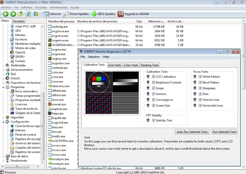 Everest оснащена встроенными тестерами, которые выводят всю необходимую информацию о состоянии процессора и оперативной памяти компьютера.